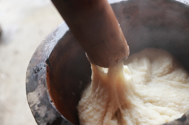 お正月ならではの恒例行事「餅つき大会」を開催。